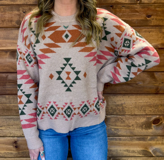Southern Aztec Sweater *Pink