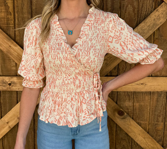 Sold outClassy Aztec Blouse *Coral