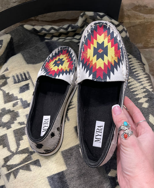 Cowhide Myra Slippers {Brown & White}