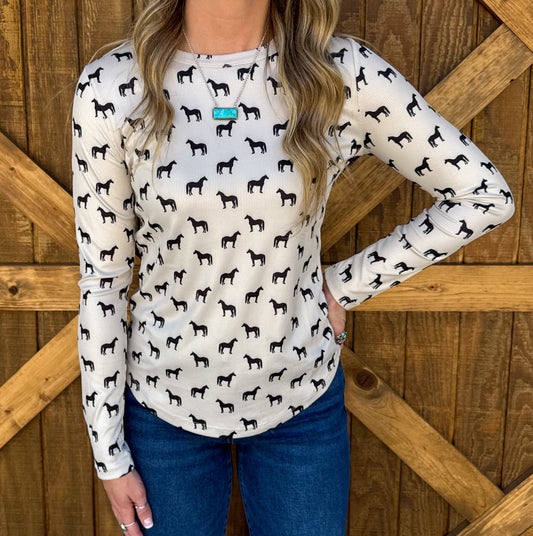 Horses Ribbed Long Sleeve