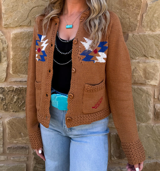 Rusty Aztec Knit Cardigan