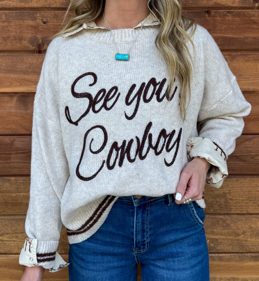 See You Cowboy Sweater *Oatmeal