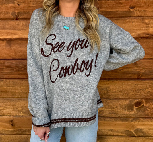 See You Cowboy Sweater *Grey