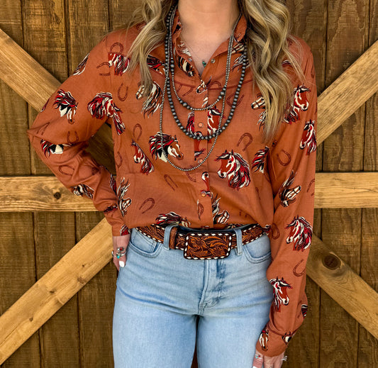 Simple Horse Button-Up Top