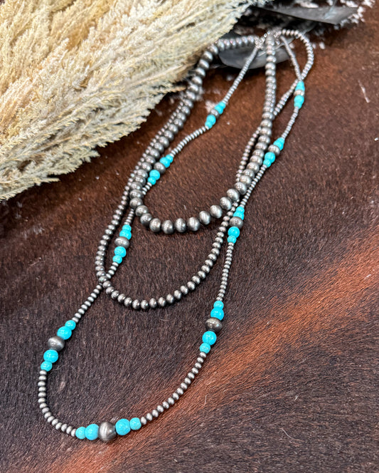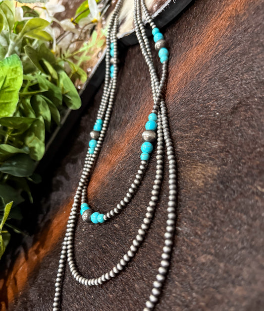 36β 3 Strand Navajo Pearl & Turquoise Necklace