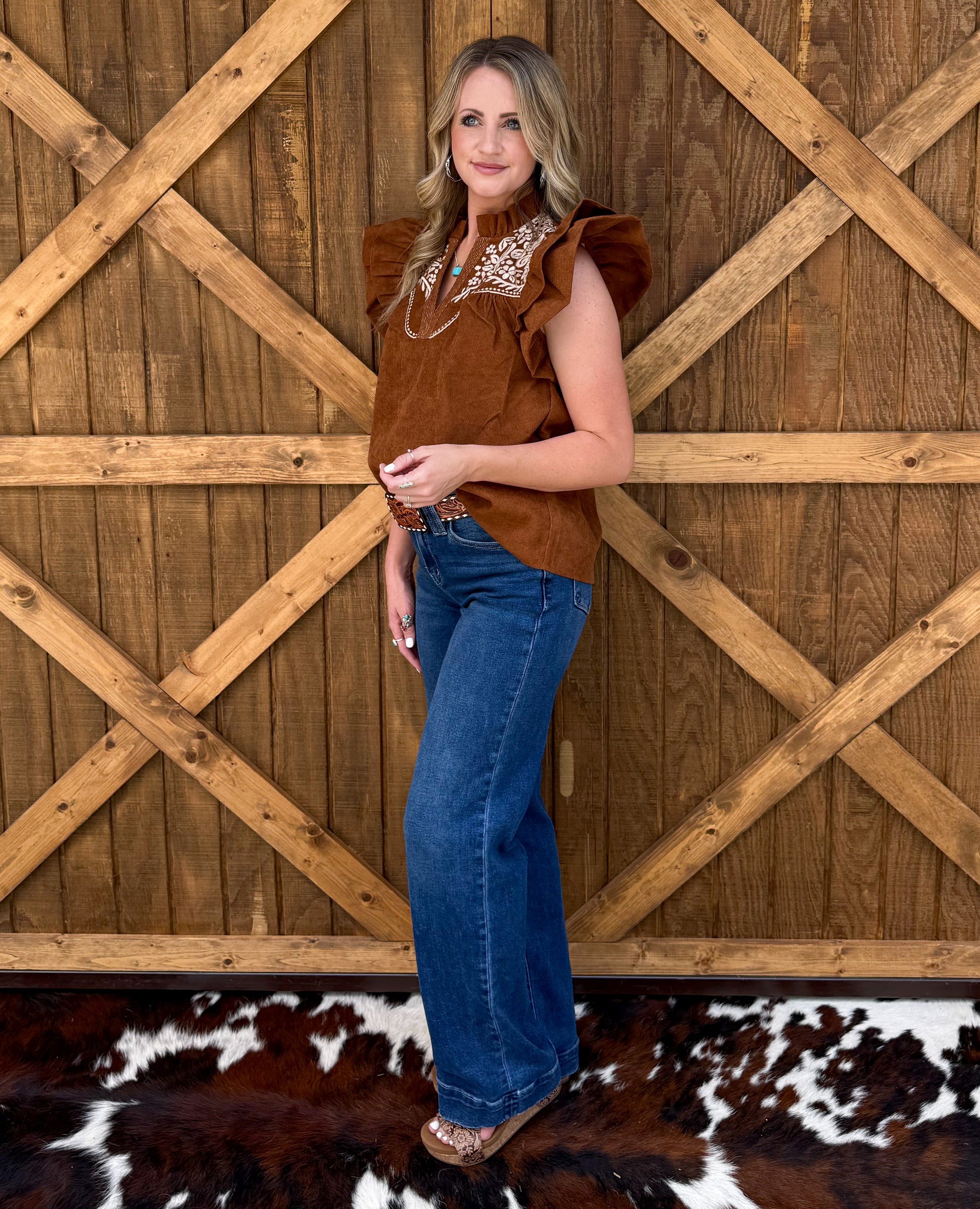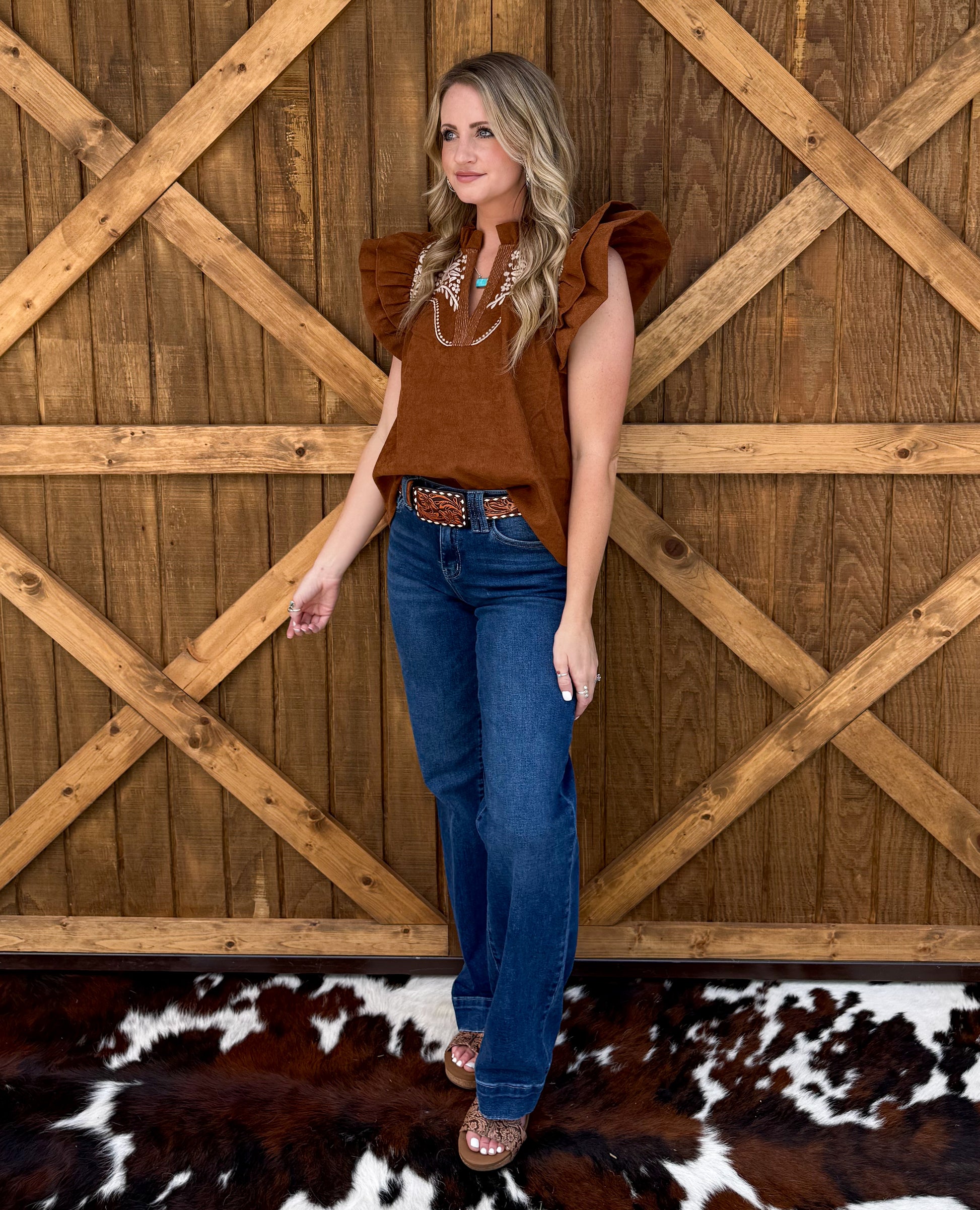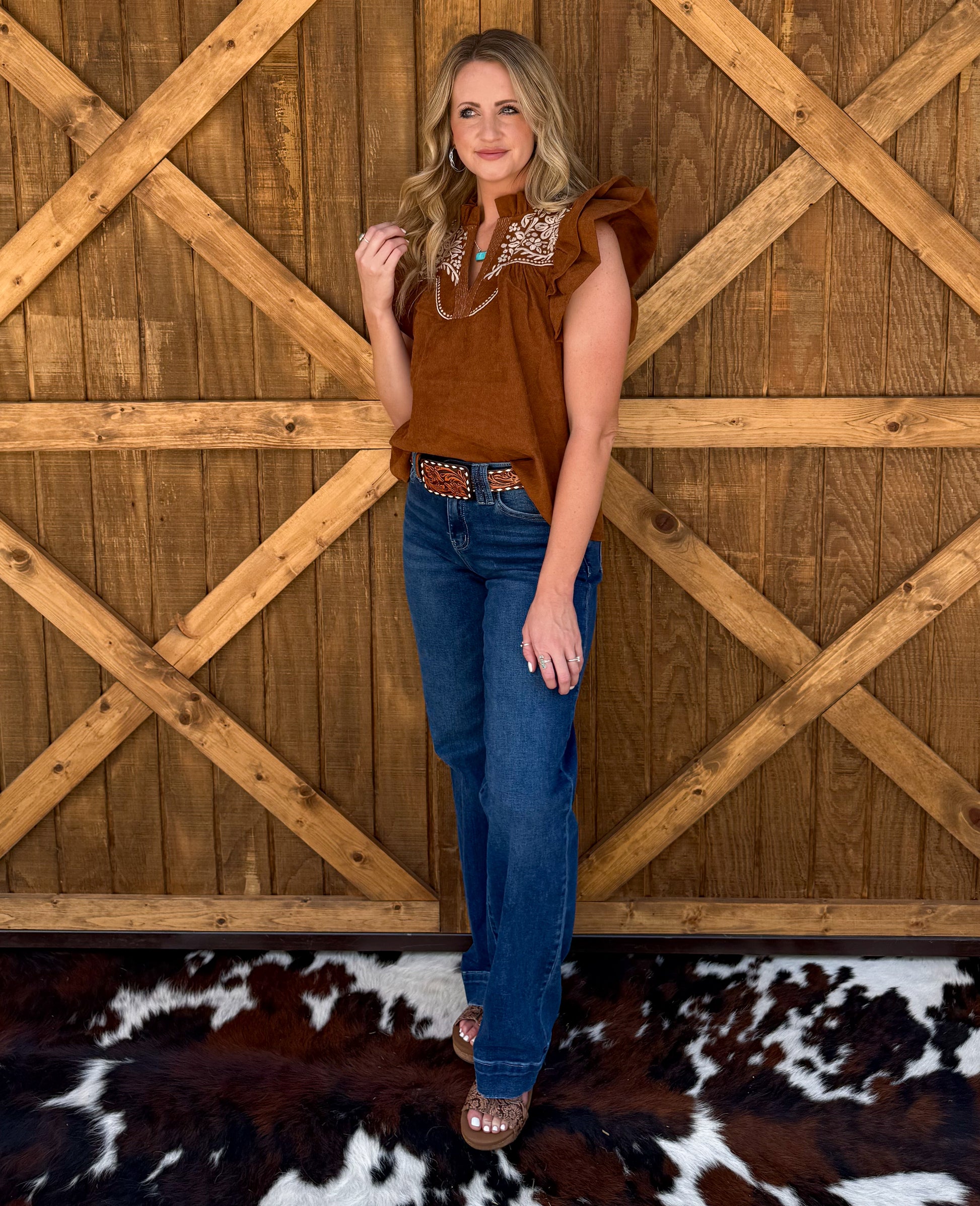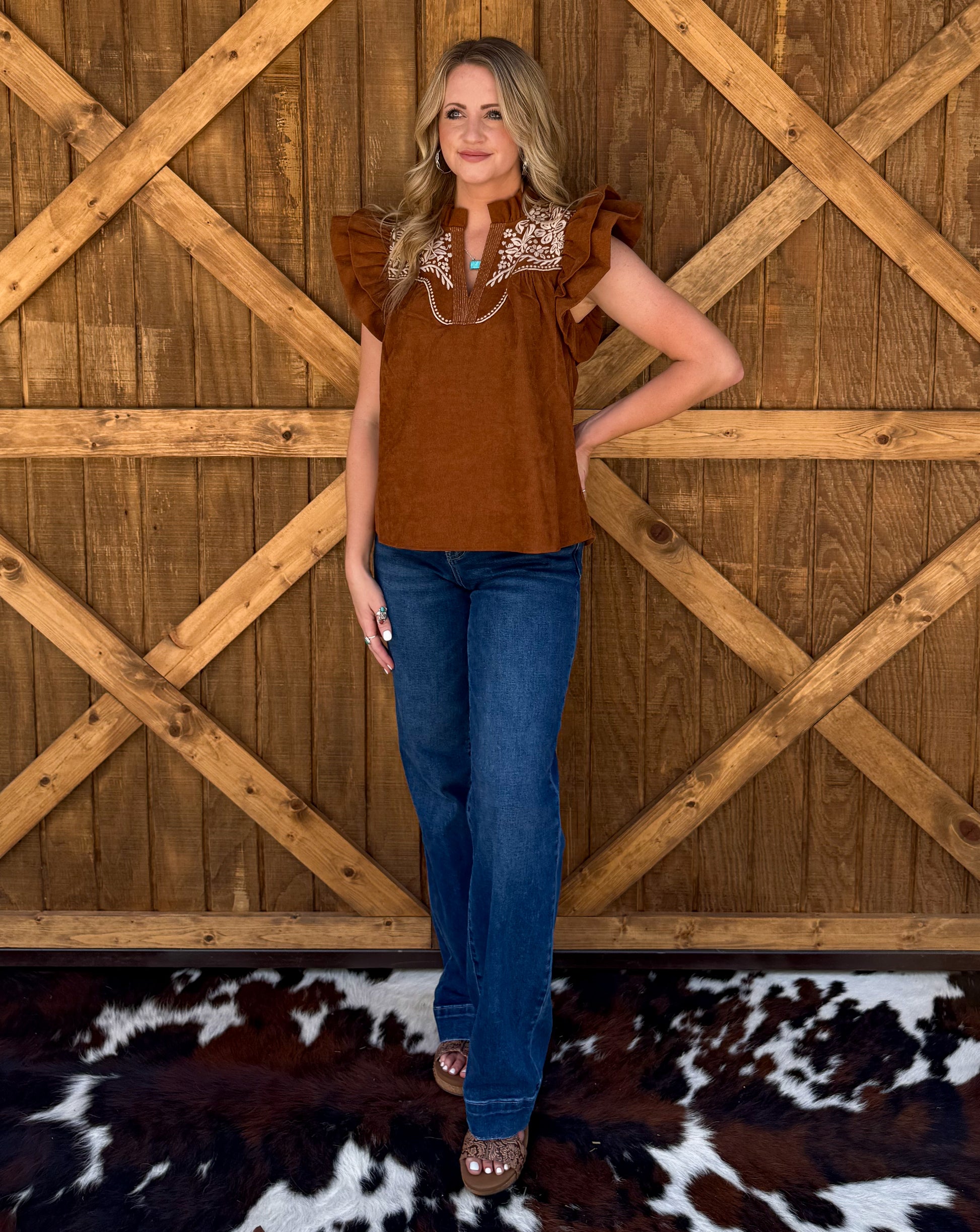 Bella Embroidered Blouse *Camel