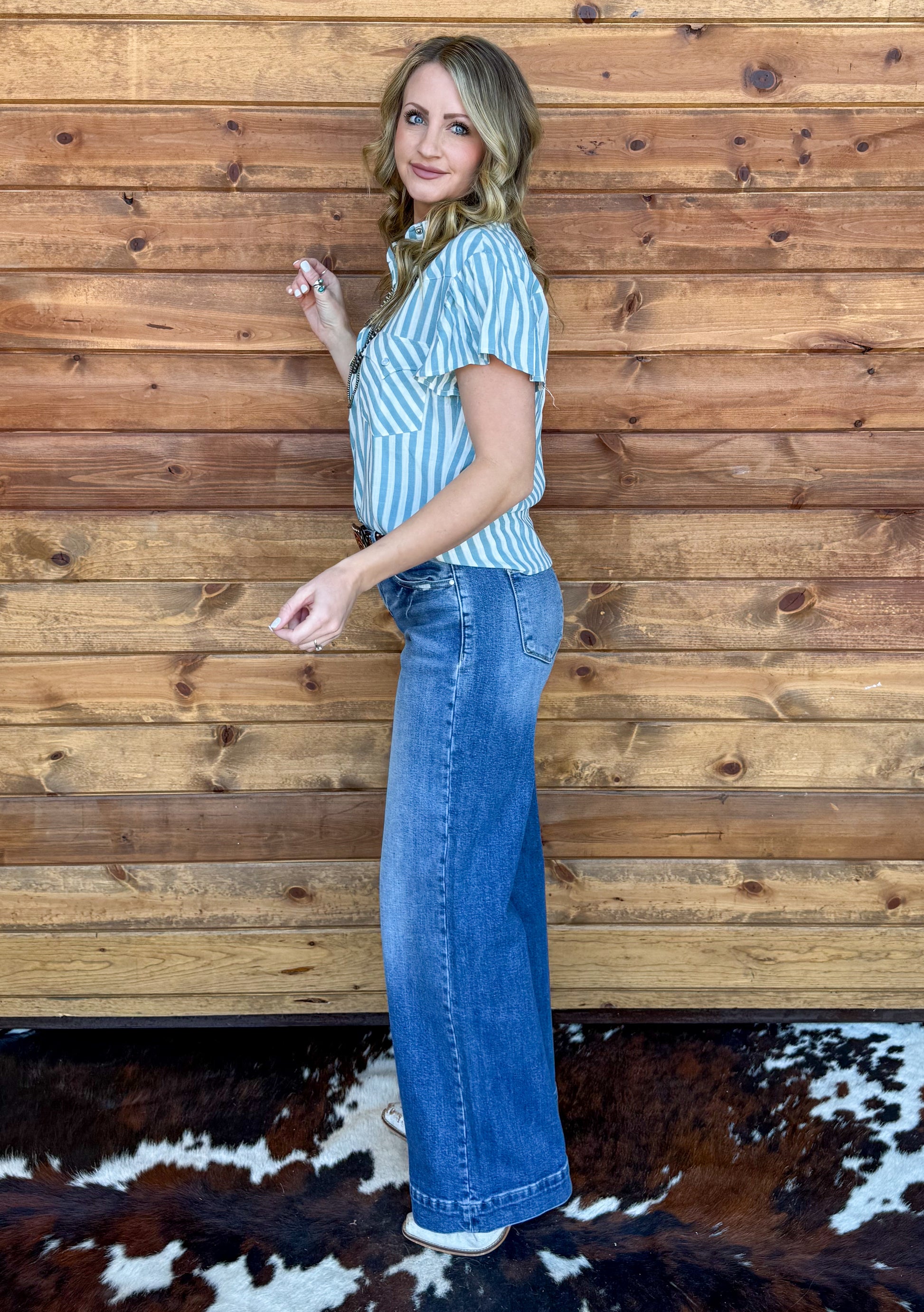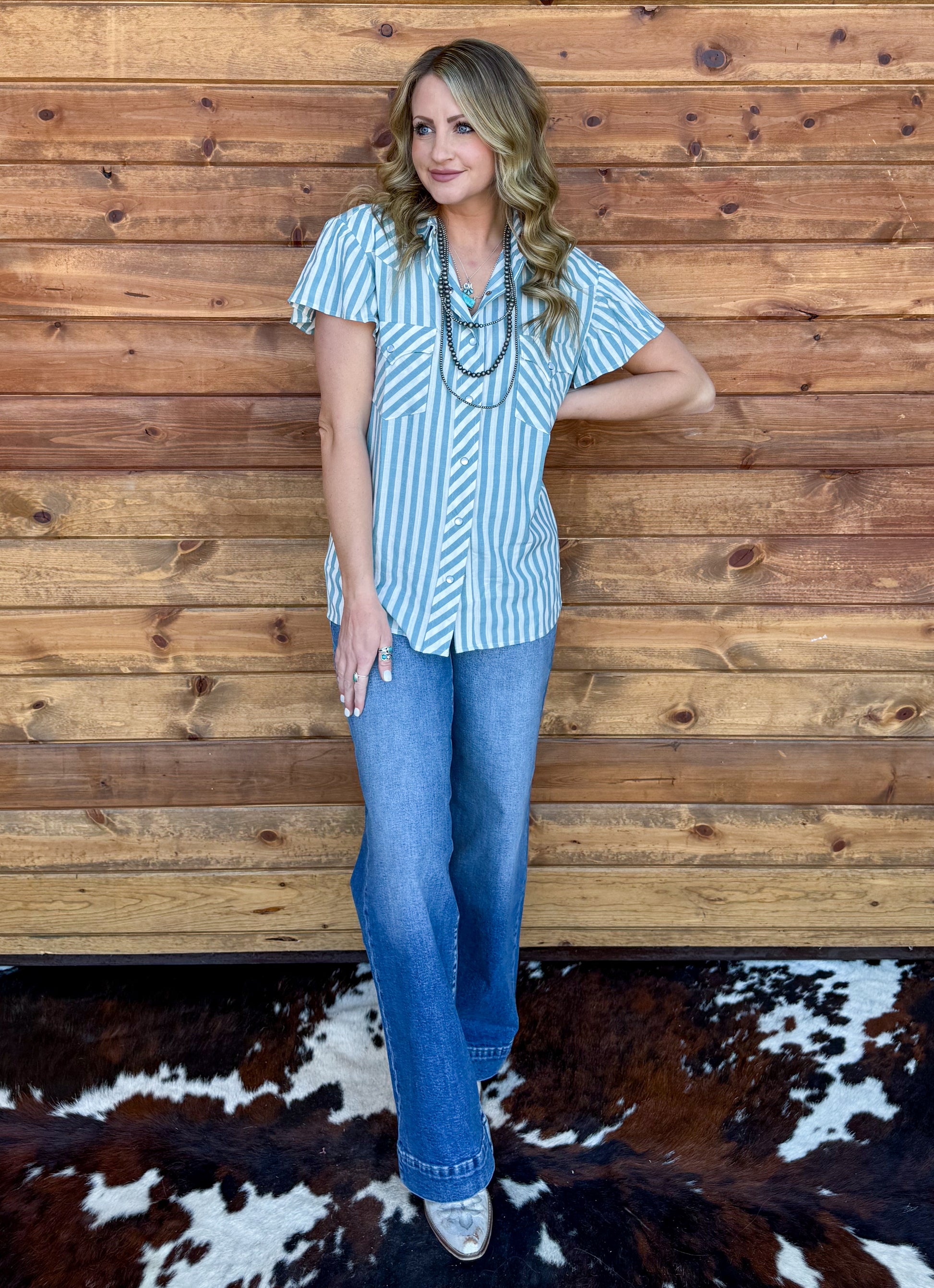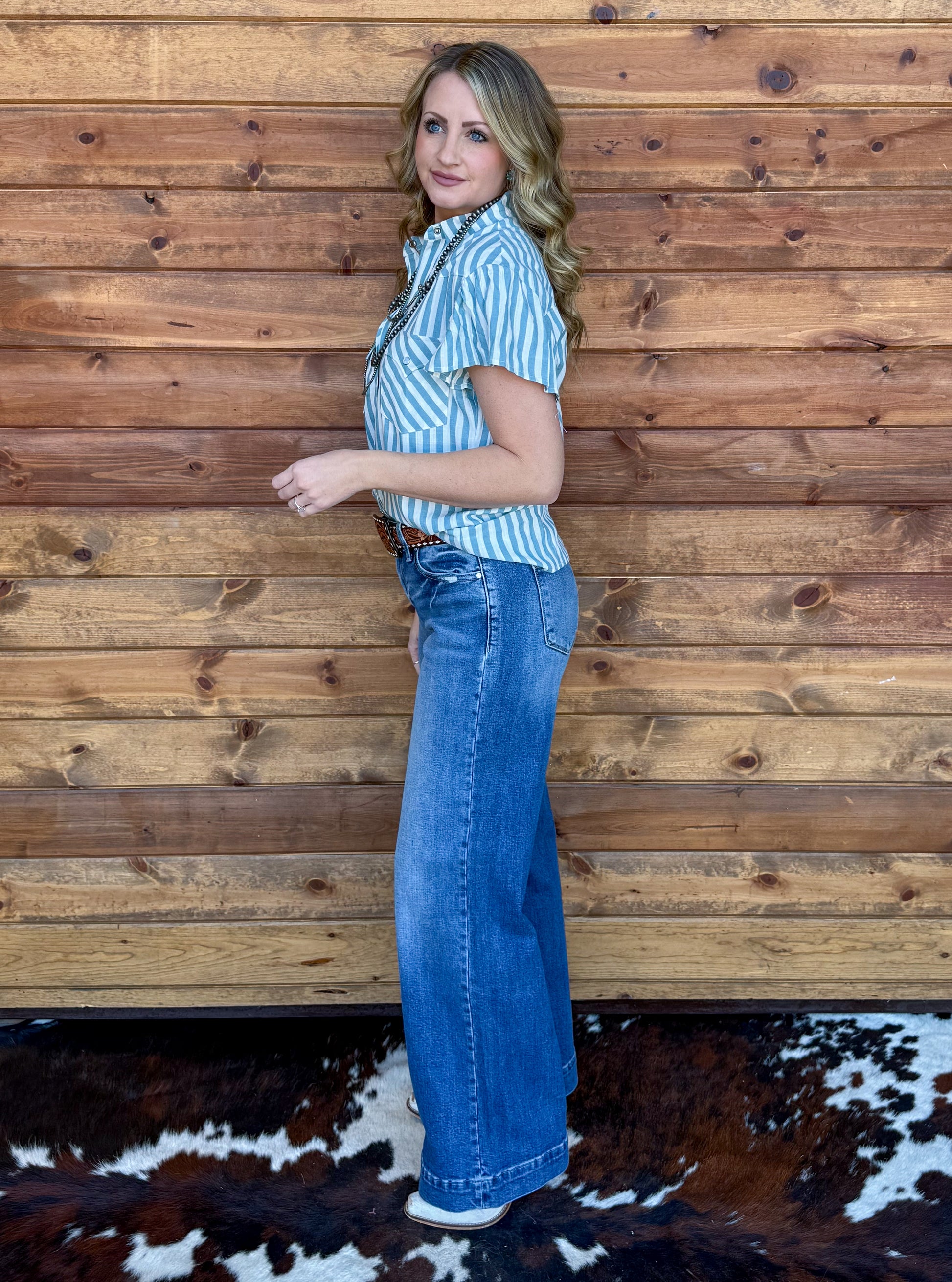Denim Babe Striped Pearl Snap