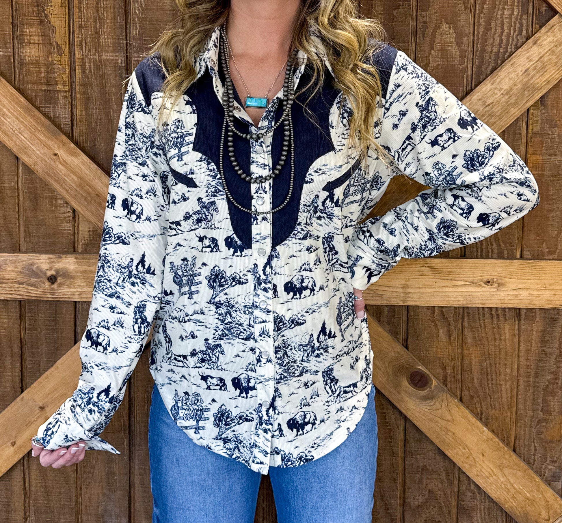 Navy Buffalo Pearl Snap