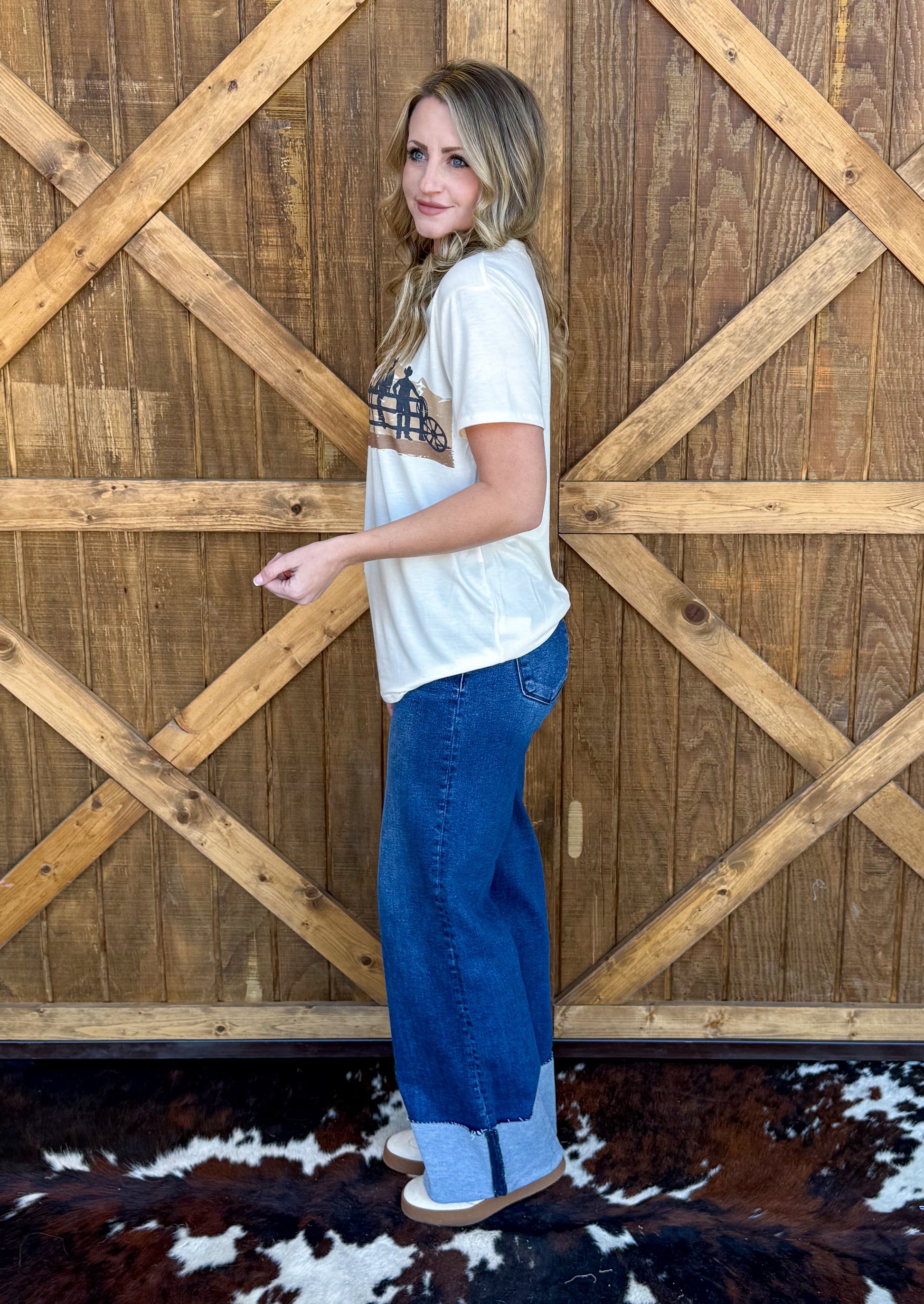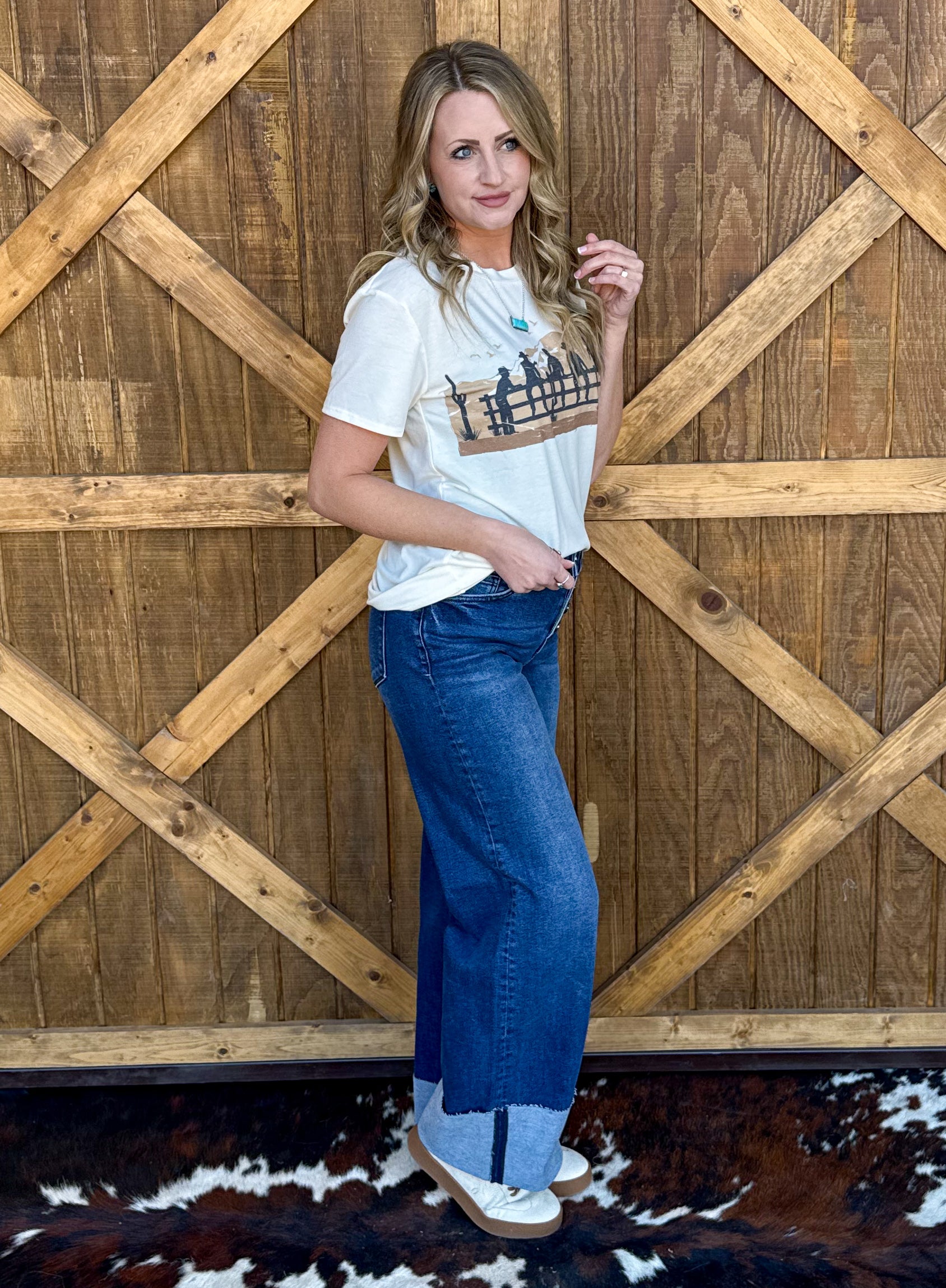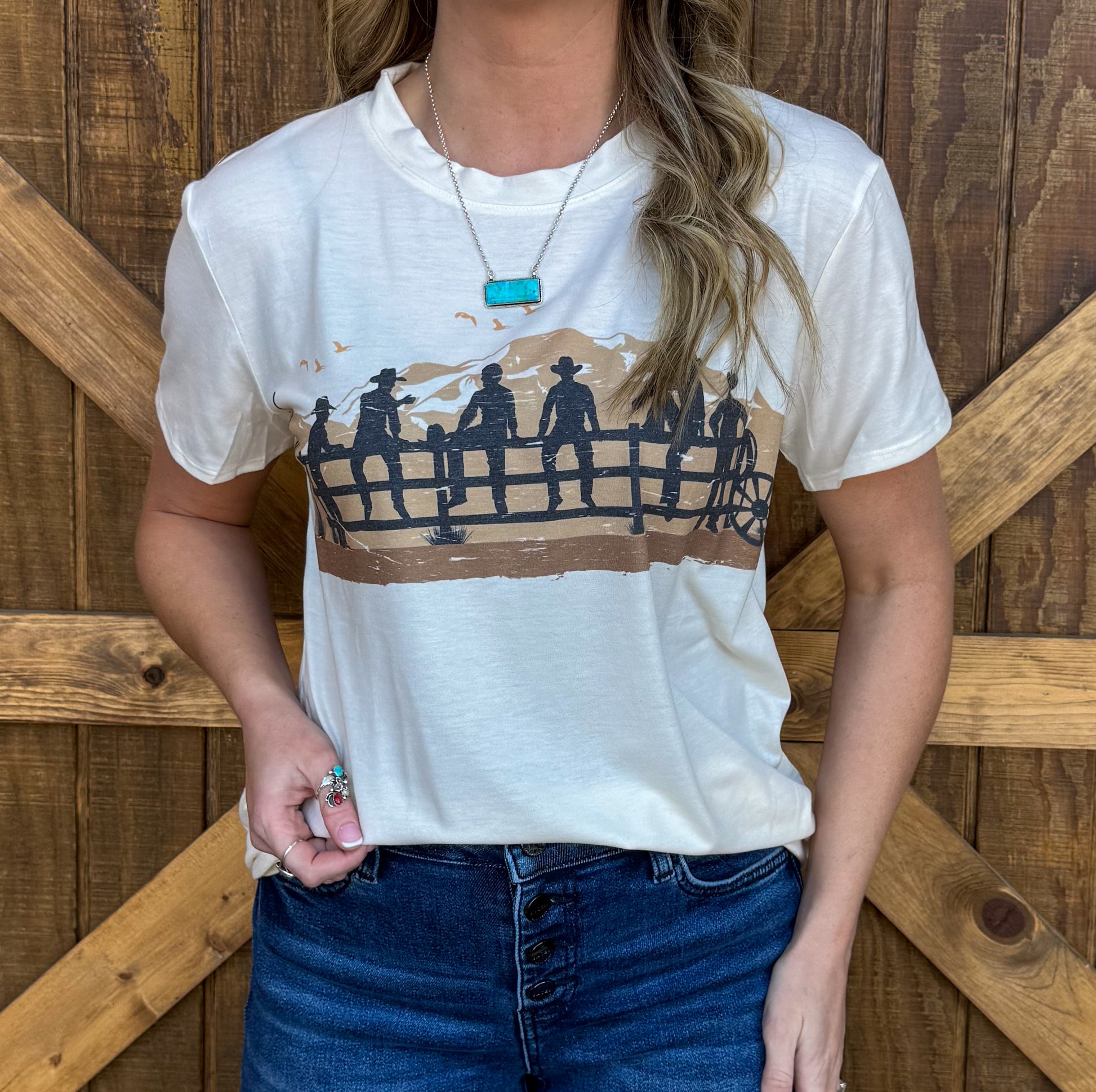 A cowboy design on a t-shirt style top