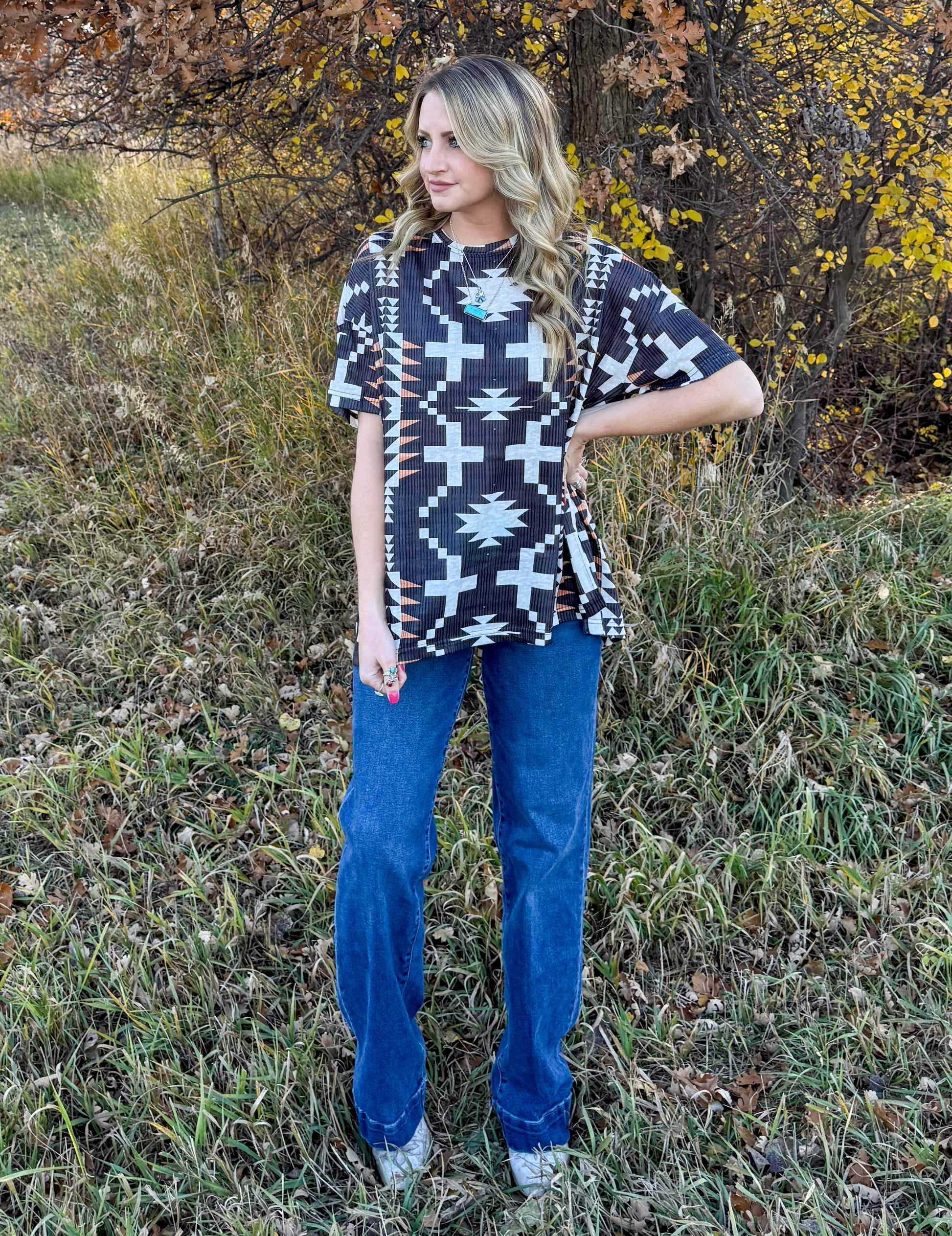 Kendra is a size small, wearing a small/medium