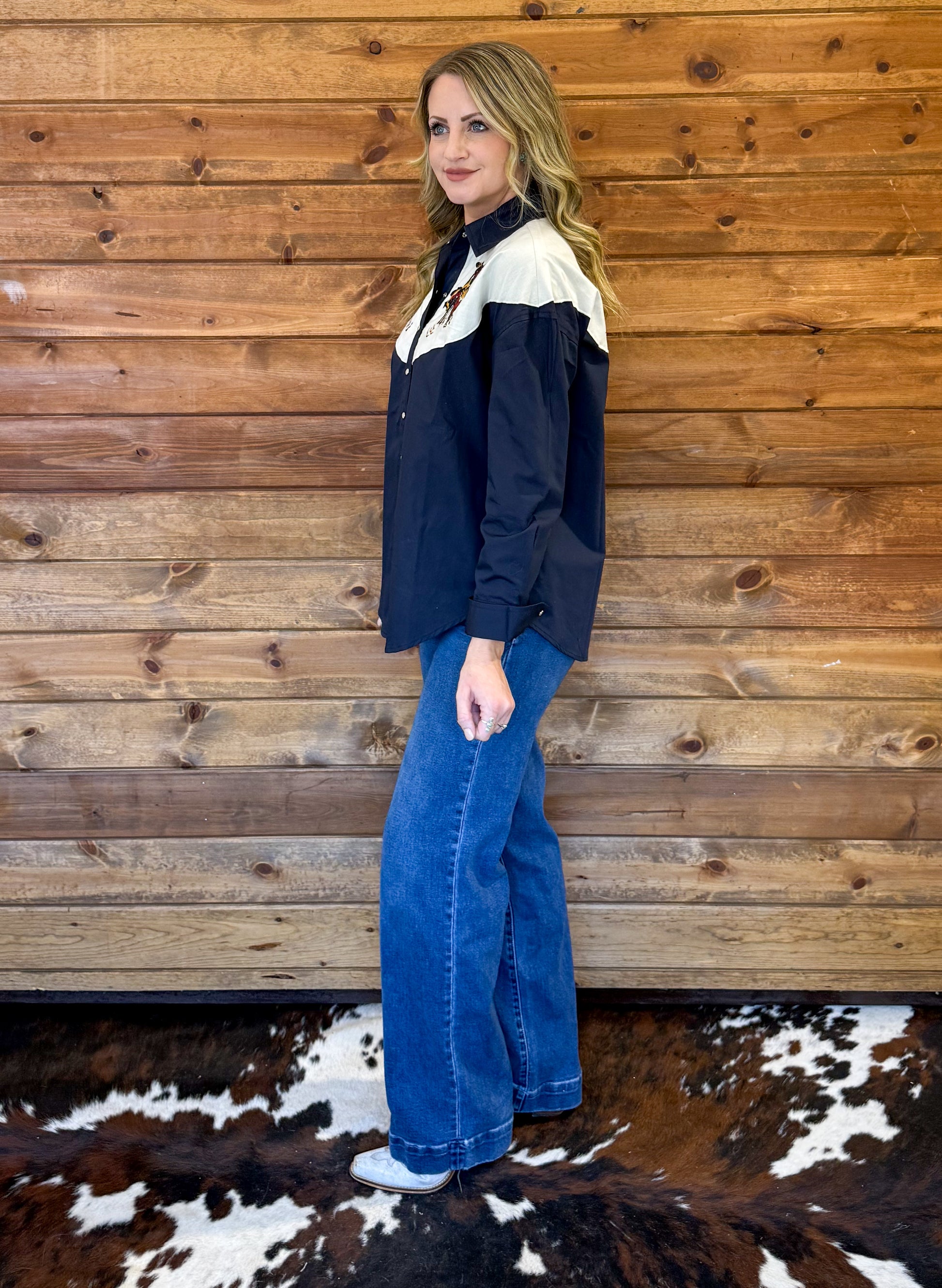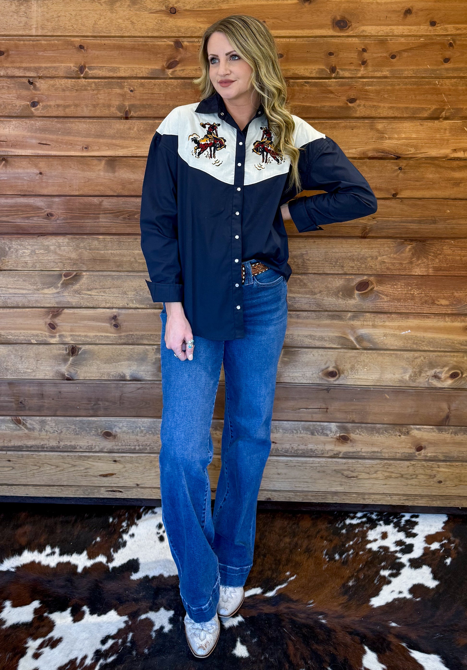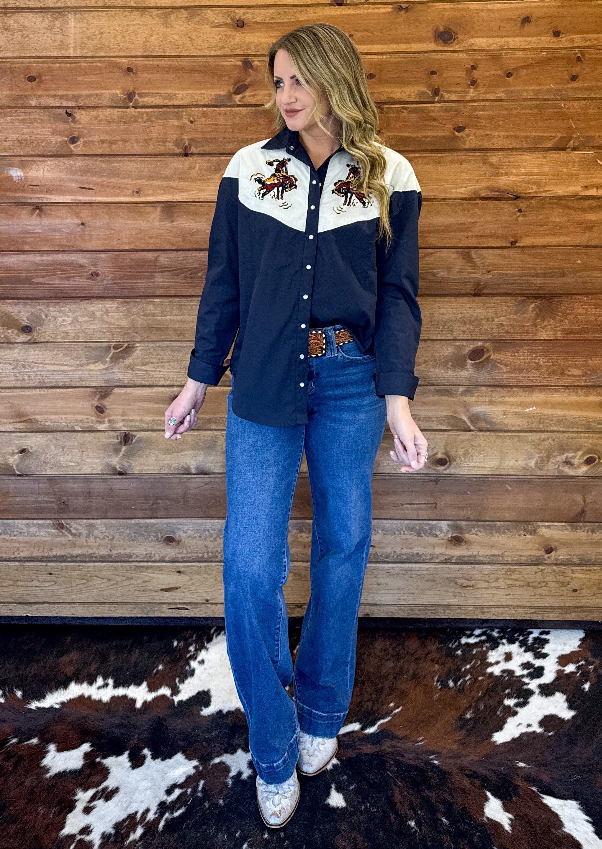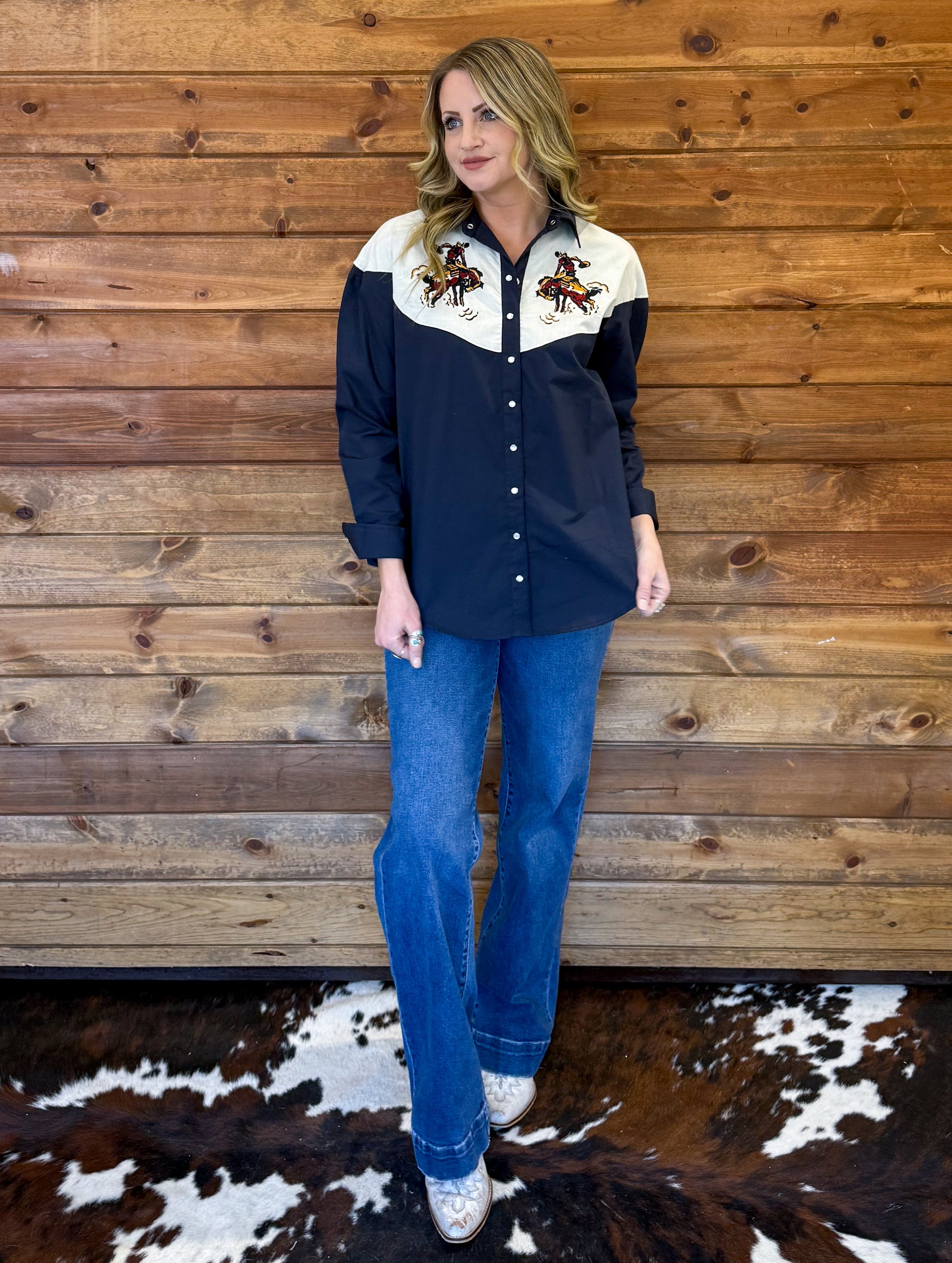 The beautiful embroidered Old Buckaroo Pearl Snap!
