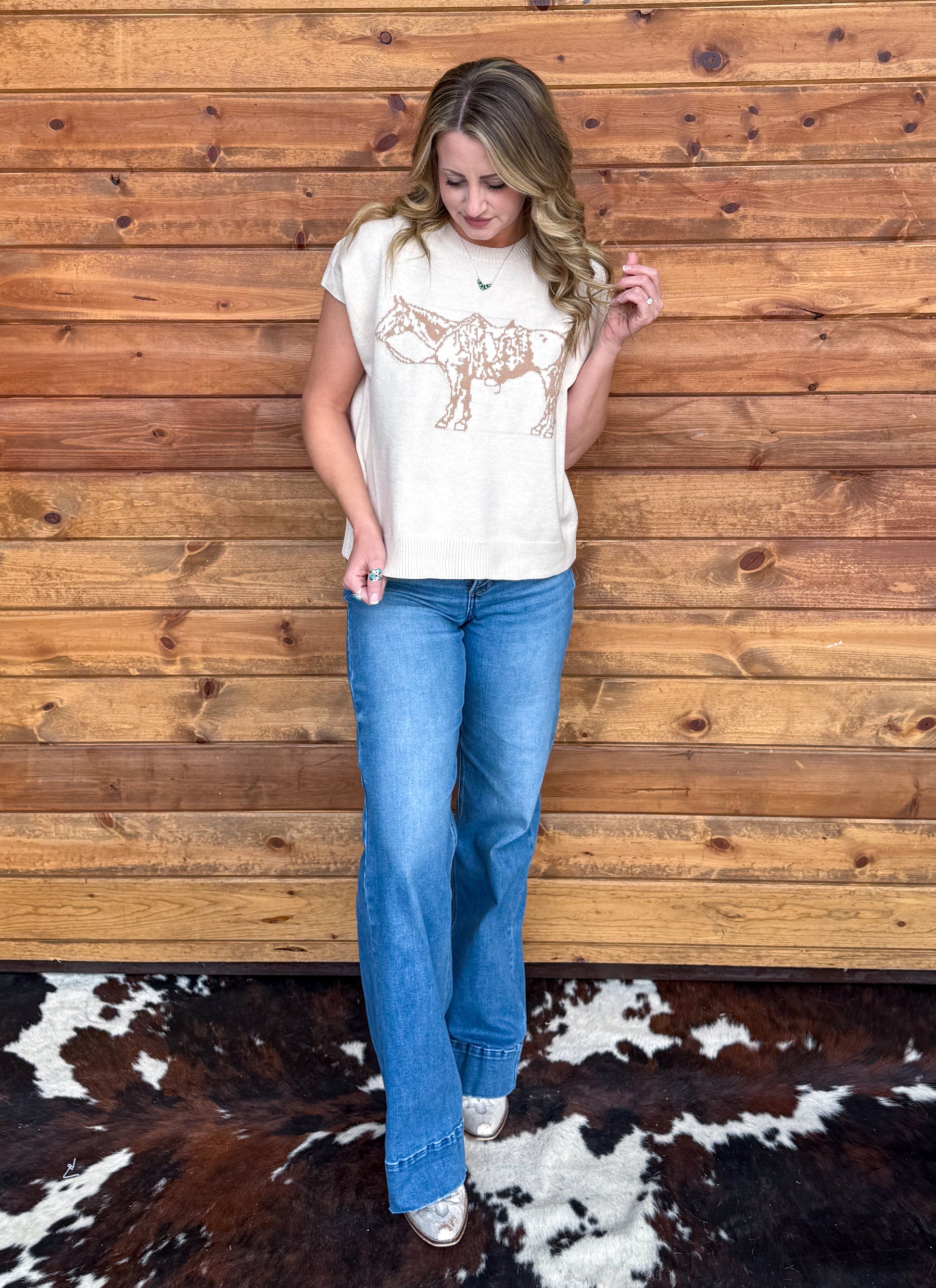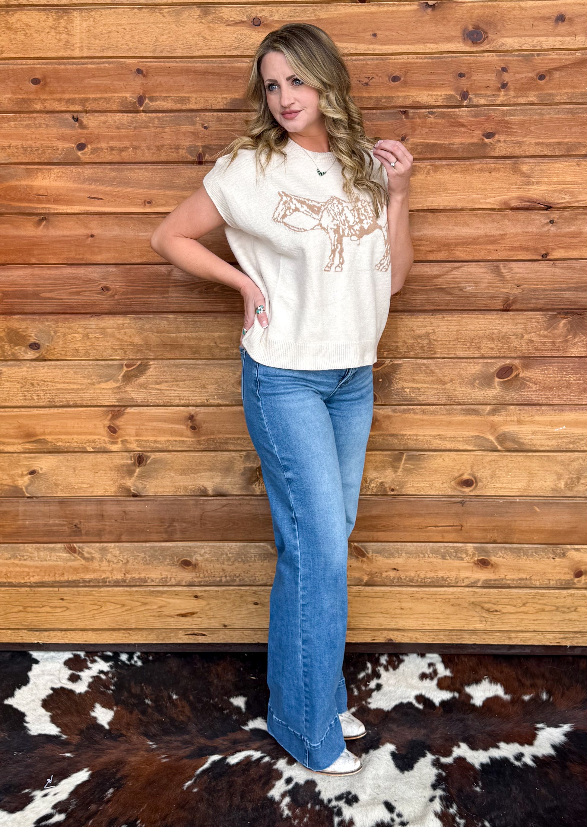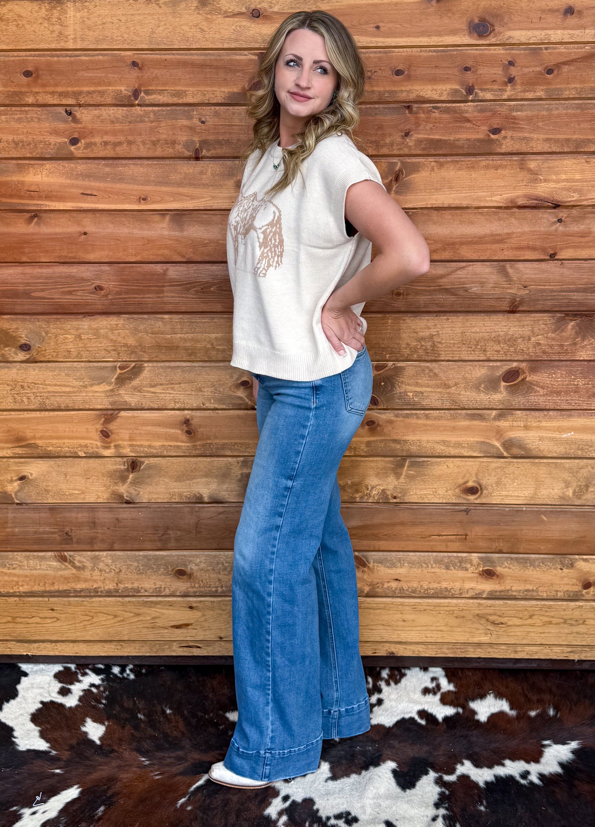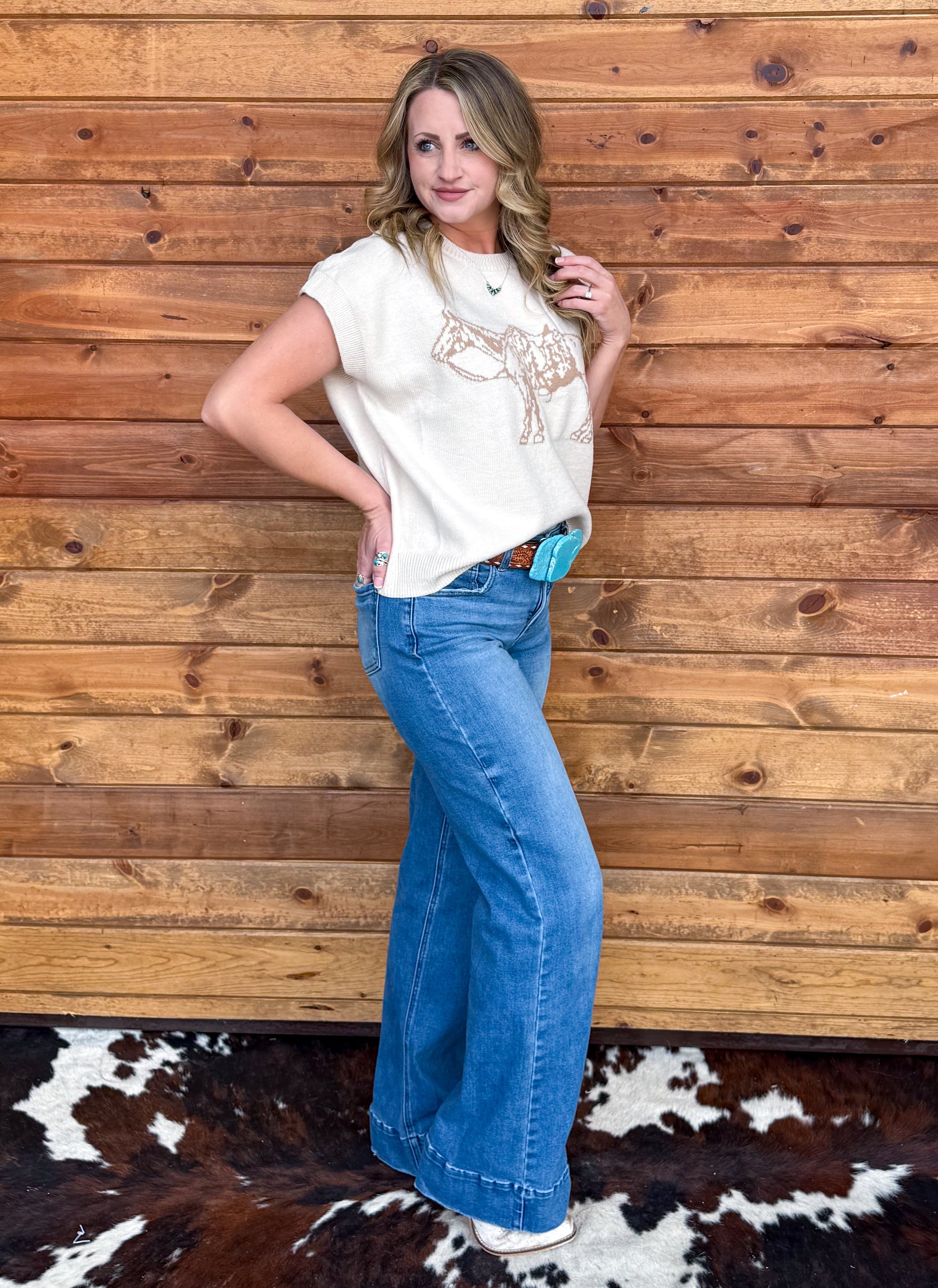 Slightly shorter - not cropped at all - but so cute with high waisted denim